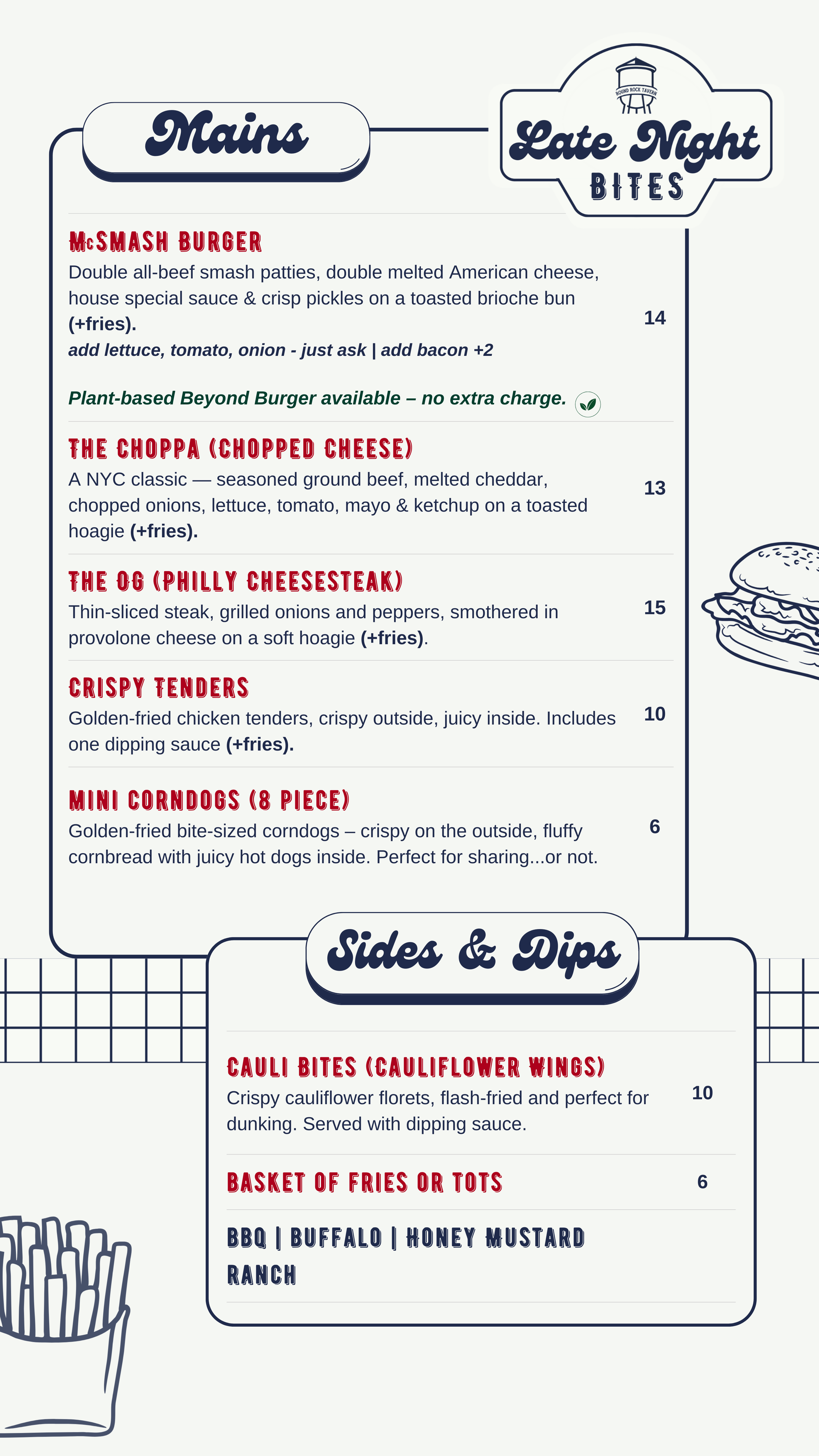 Your go-to late-night food stop, serving fresh, fast, crave-worthy bites right outside Round Rock Tavern.